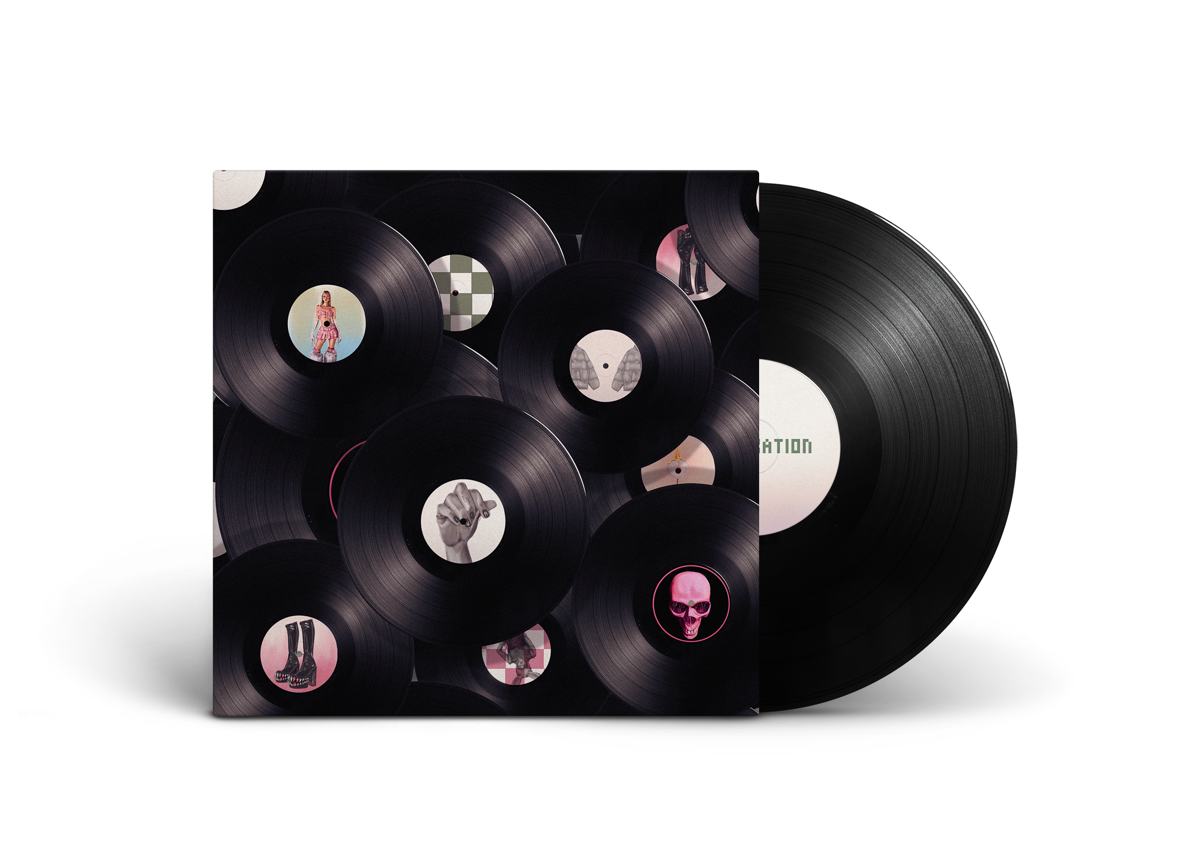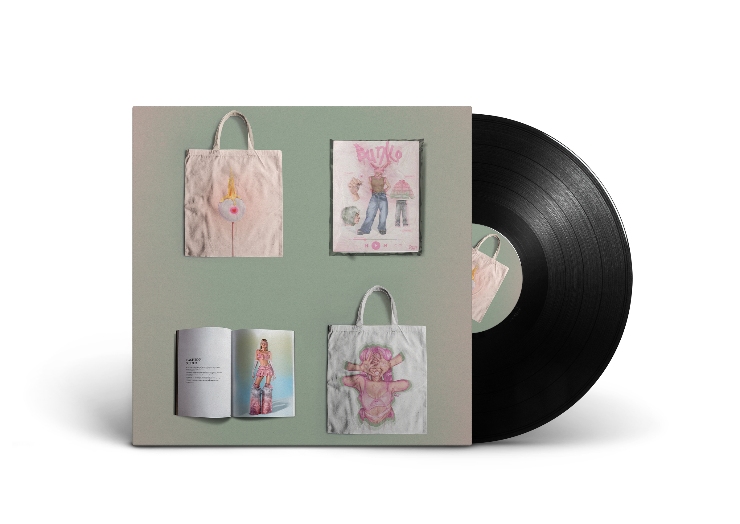 I designed mock-ups like album sleeves, game menus, and fake UI screens to display my projects.